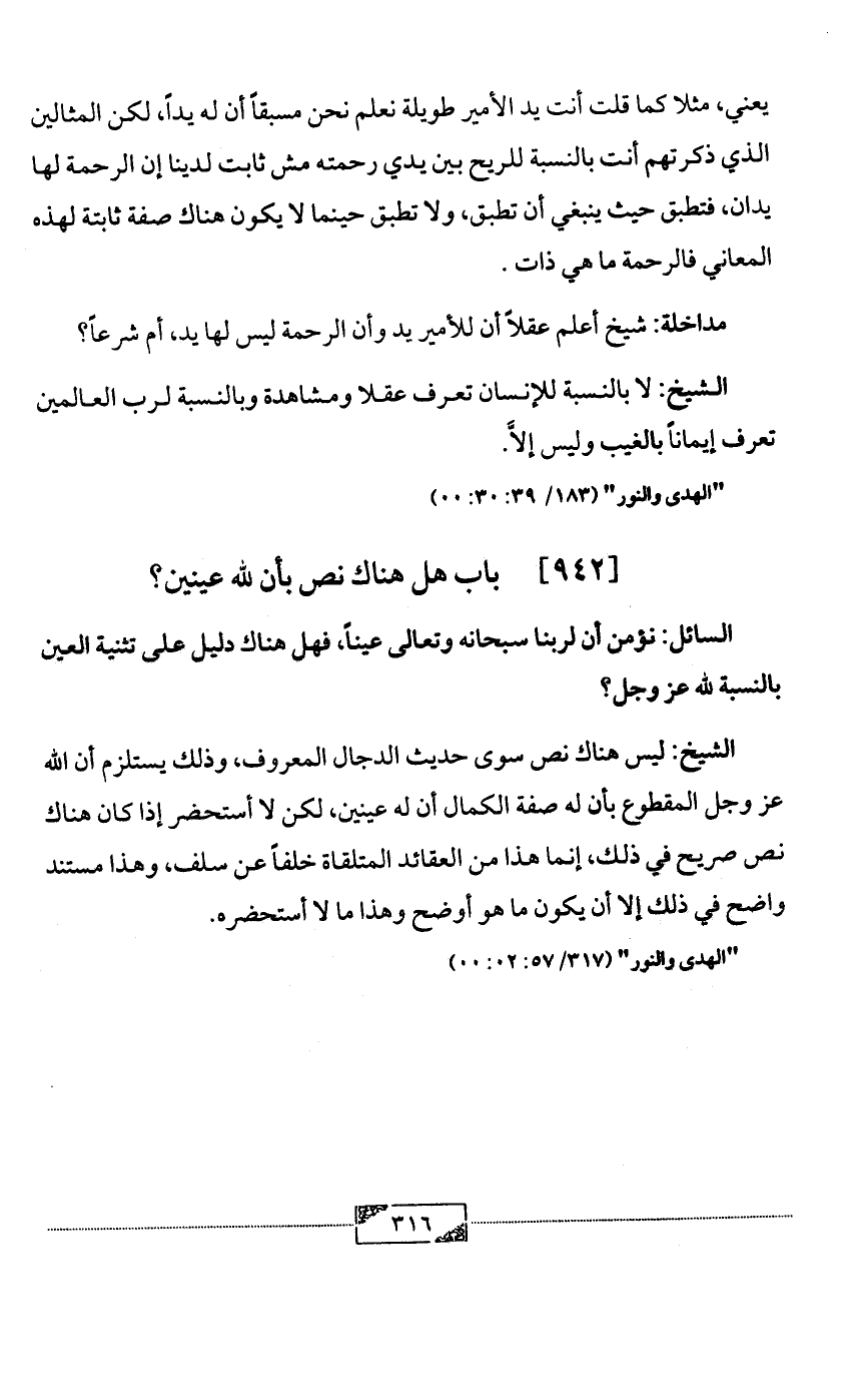 مداخلة: شيخ أعلم عقلاً أن للأمير يد وأن الرحمة ليس لها يد, أم شرعاً؟