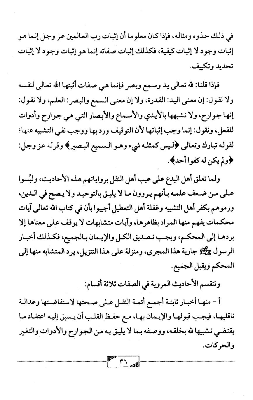 وتنقسم الأحاديث المروية في الصفات ثلاثة أقسام: