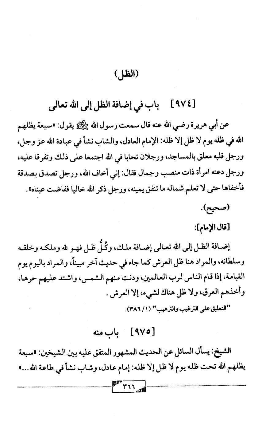 [974] باب في إضافة الظل إلى الله تعالى