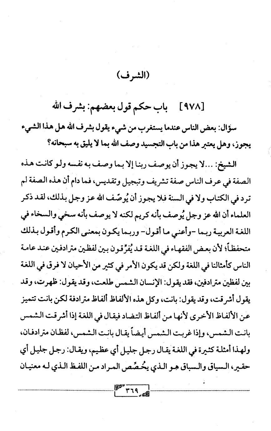 [978] باب حكم قول بعضهم: بشرف الله