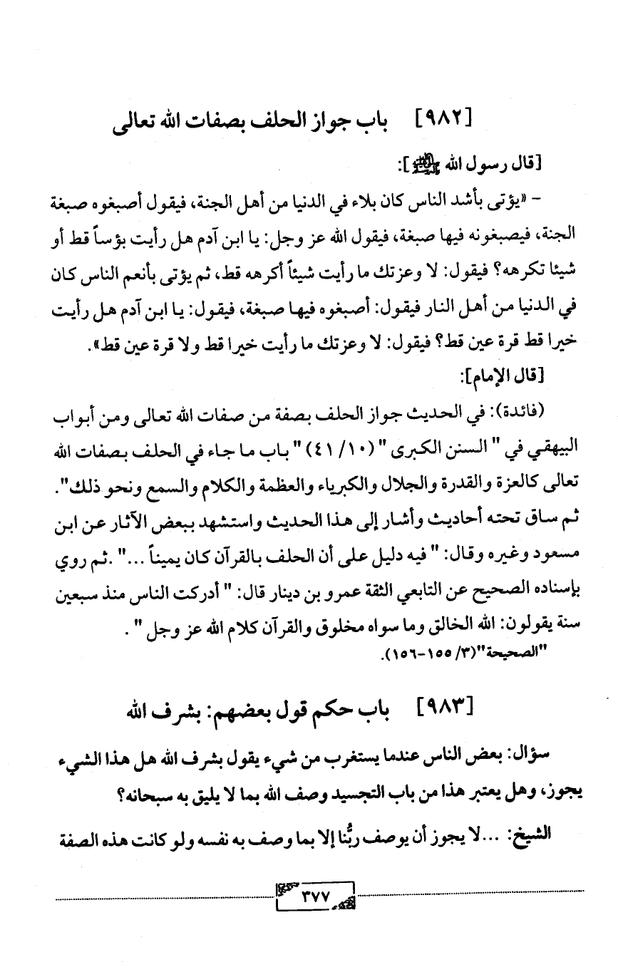 الشيخ: ... لا يجوز أن يوصف ربُّنا إلا بما وصف به نفسه ولو كانت هذه الصفة