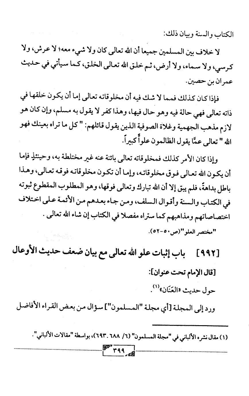 [992] باب إثبات علو الله تعالى مع بيان ضعف حديث الأوعال