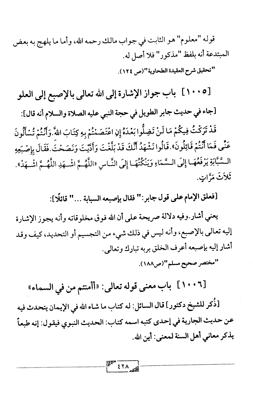 [1005] باب جواز الإشارة إلى الله تعالى بالإصبع إلى العلو