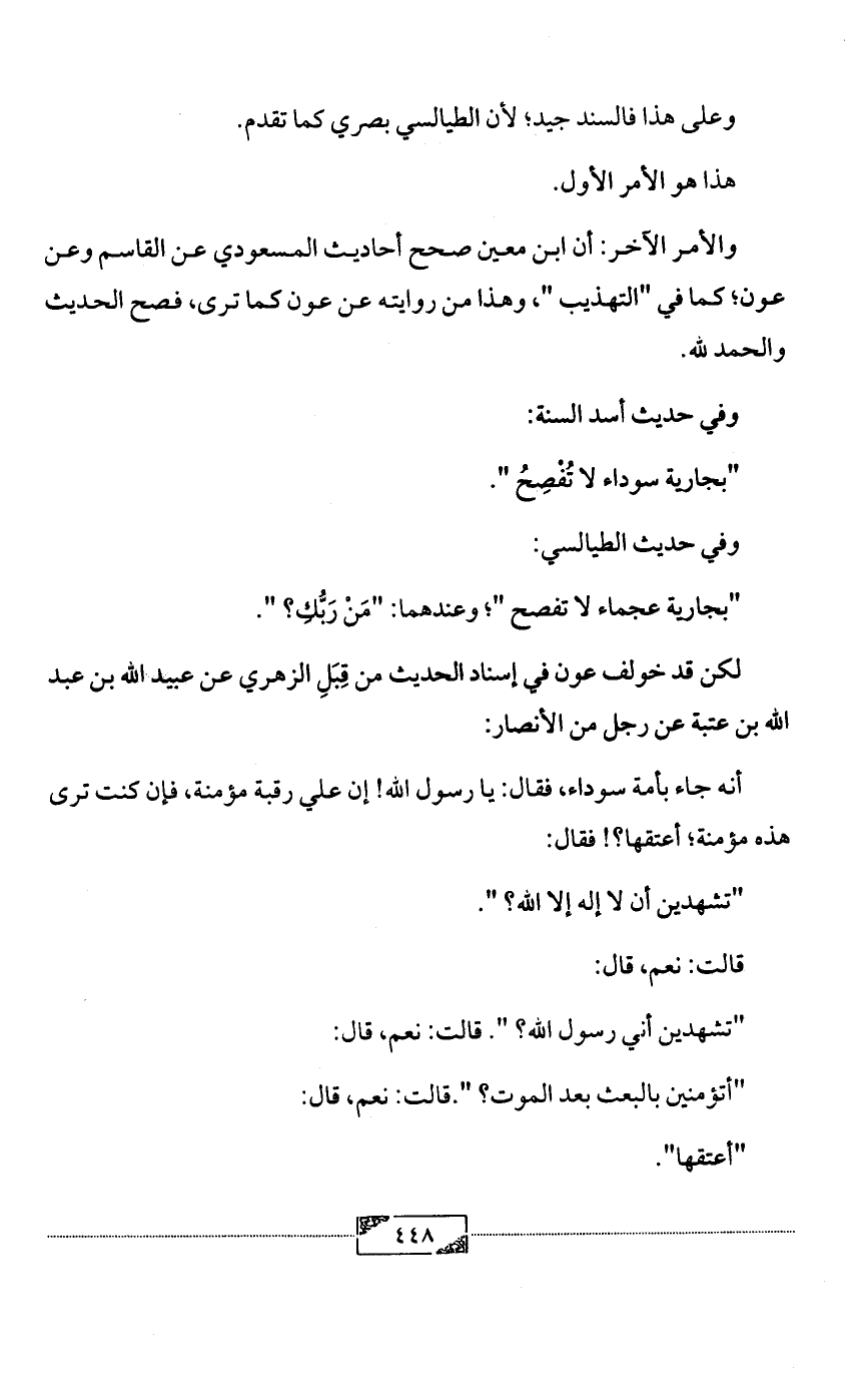 والأمر الآخر: أن ابن معين صحح أحاديث المسعودي عن القاسم وعن عون؛ كما في "التهذيب "، وهذا من روايته عن عون كما ترى، فصح الحديث والحمد لله.