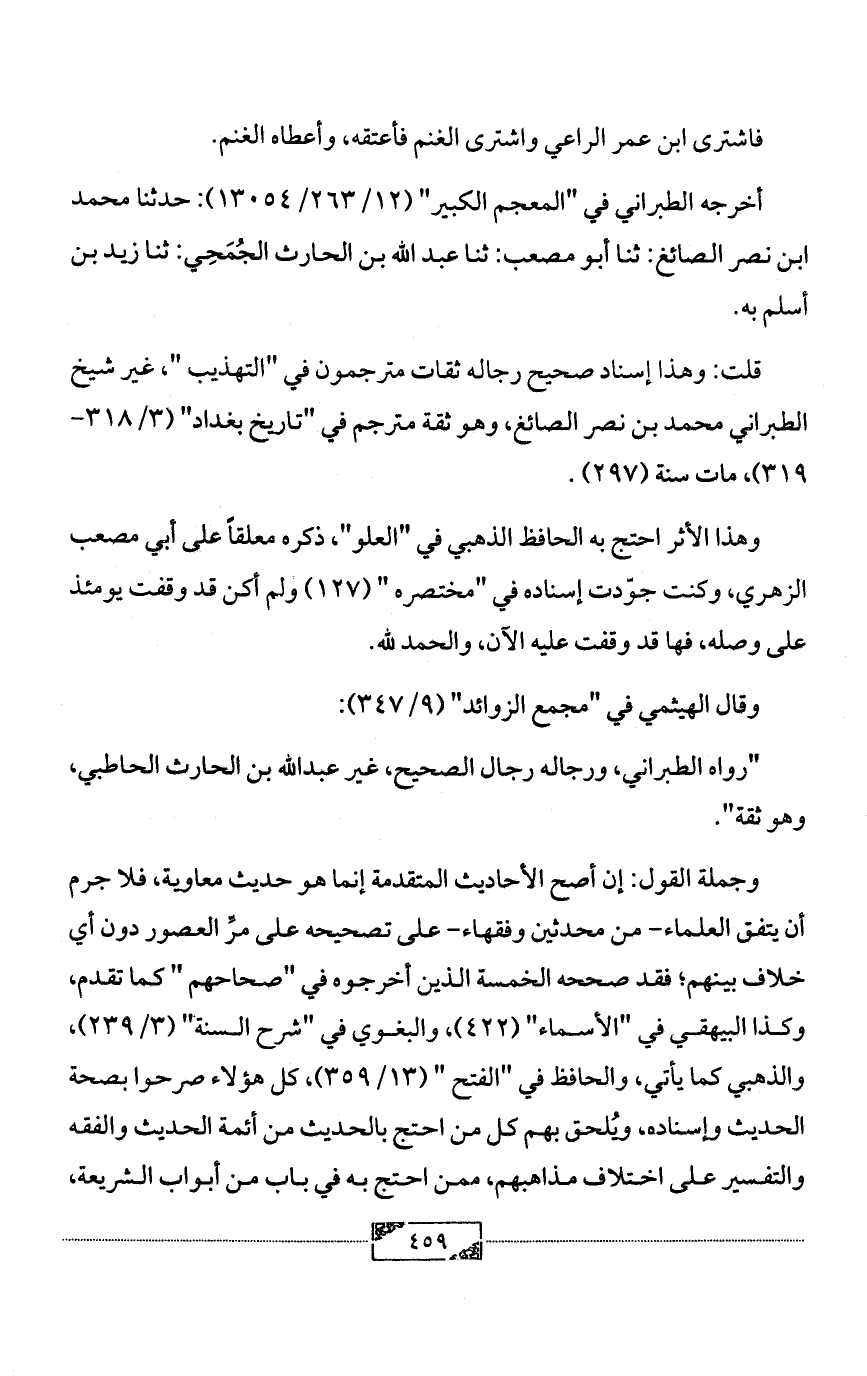 قلت: وهذا إسناد صحيح رجاله ثقات مترجمون في "التهذيب "، غير شيخ الطبراني محمد بن نصر الصائغ، وهو ثقة مترجم في "تاريخ بغداد" (3/ 318 - 319)، مات سنة (297).