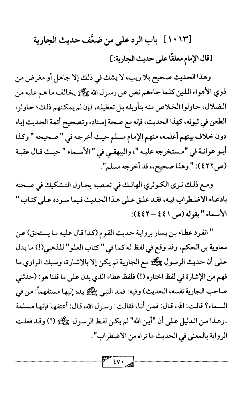 [1013] باب الرد على من ضعَّف حديث الجارية