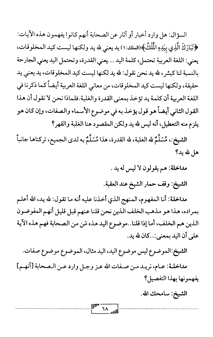 الشيخ: الموضوع ليس موضوع اليد، اليد مثال، الموضوع موضوع صفات.