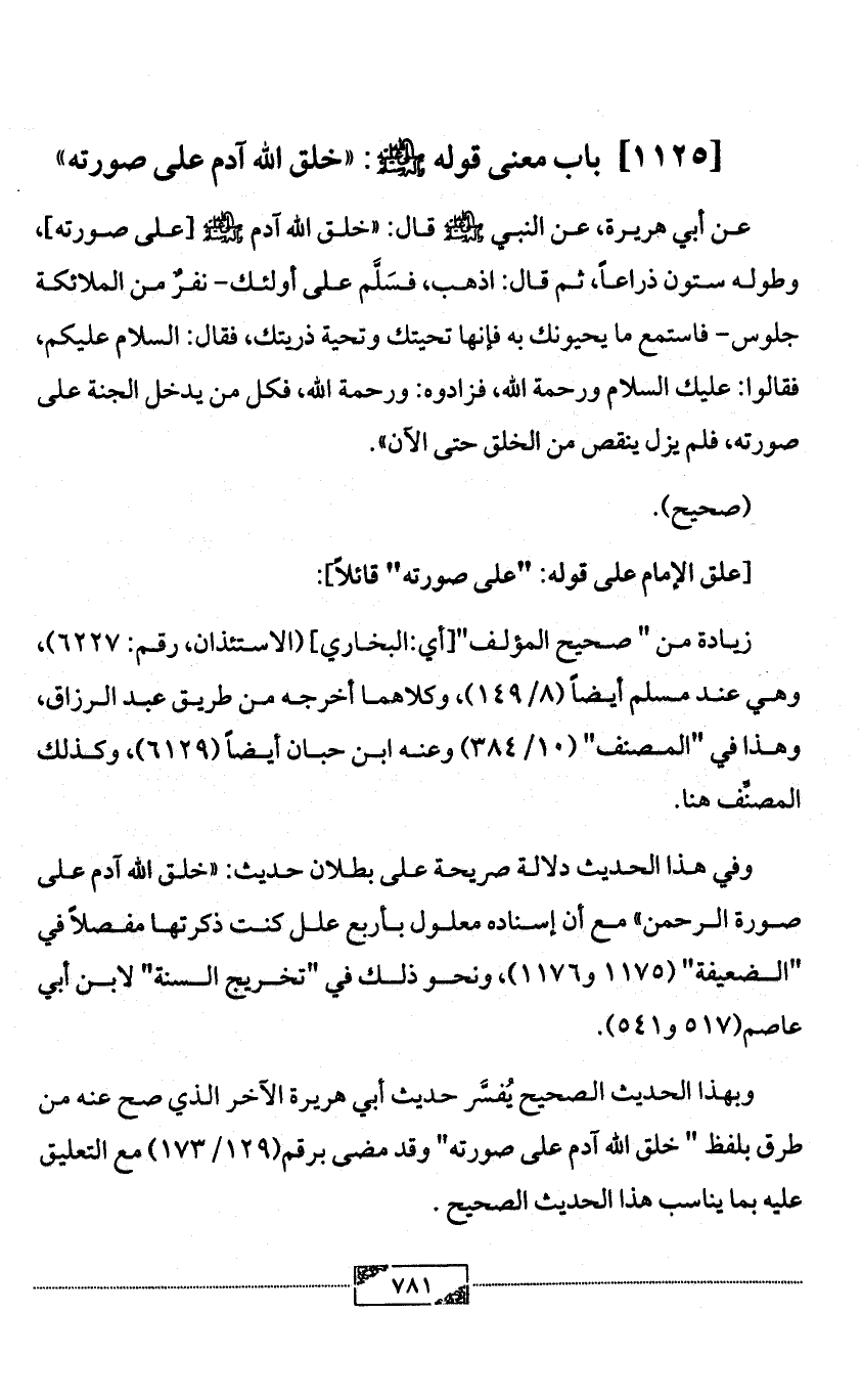 [1125] باب معنى قوله - صلى الله عليه وآله وسلم -: «خلق الله آدم على صورته»