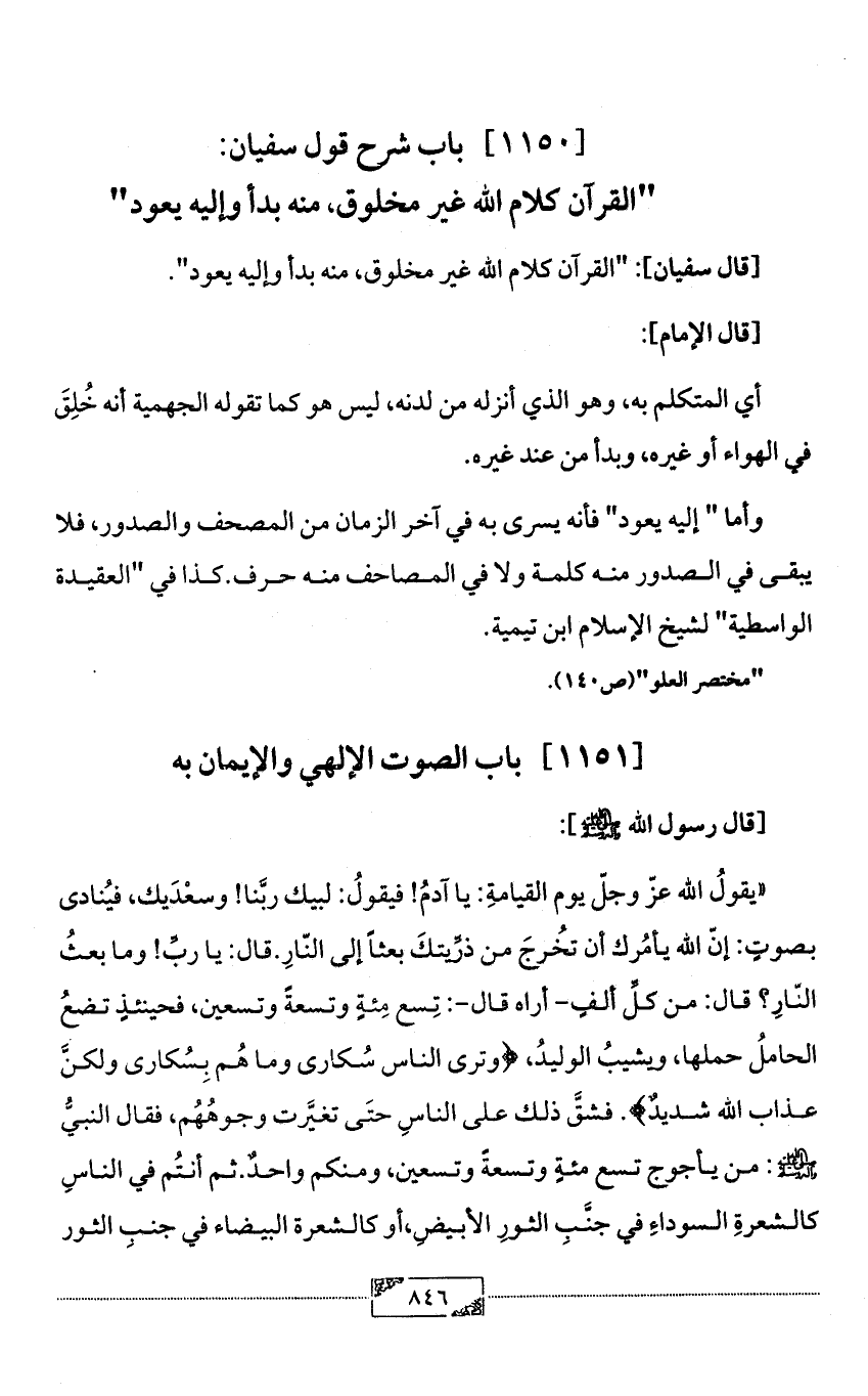 [قال سفيان]: "القرآن كلام الله غير مخلوق، منه بدأ وإليه يعود".