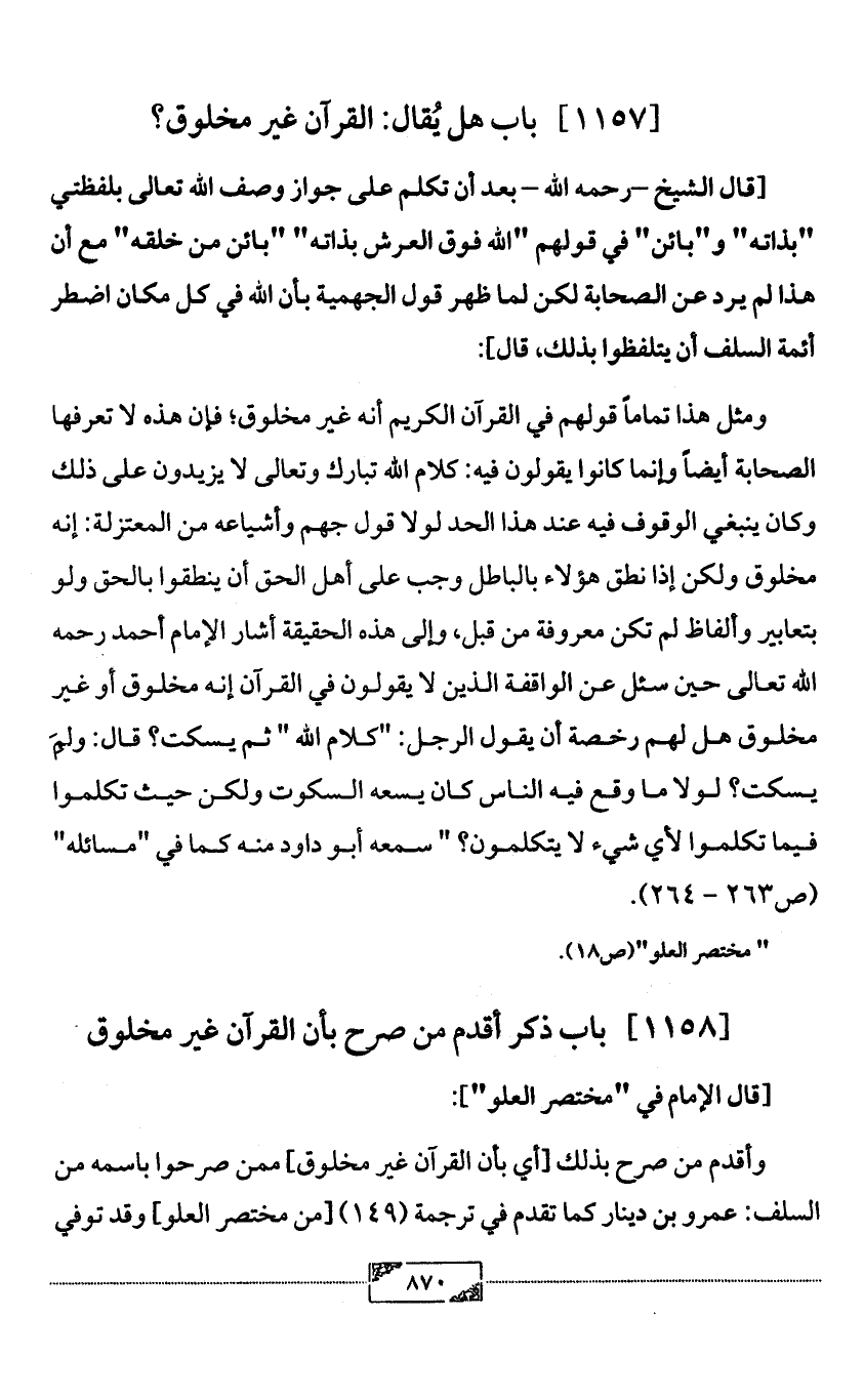 [1157] باب هل يُقال: القرآن غير مخلوق؟