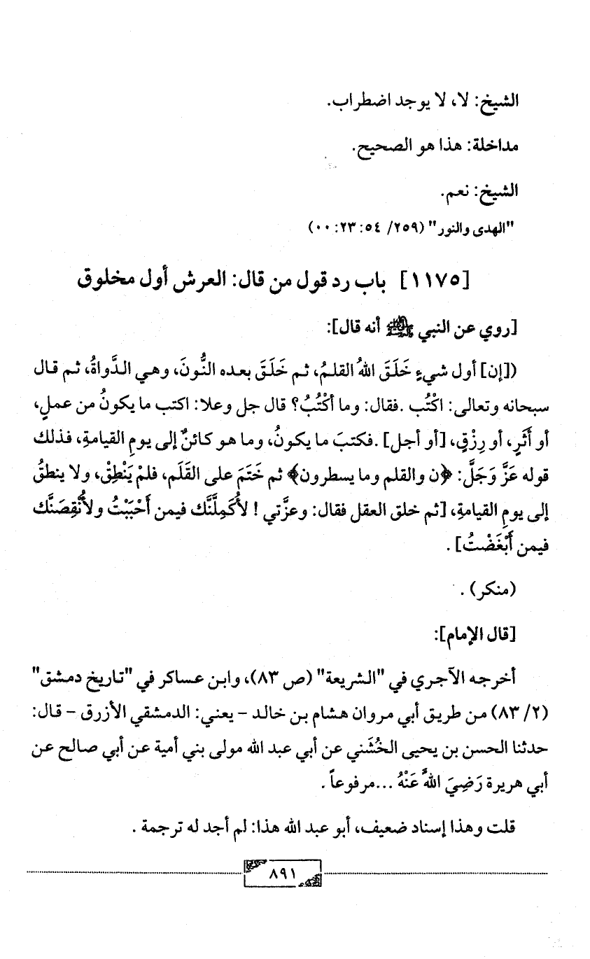 [1175] باب رد قول من قال: العرش أول مخلوق