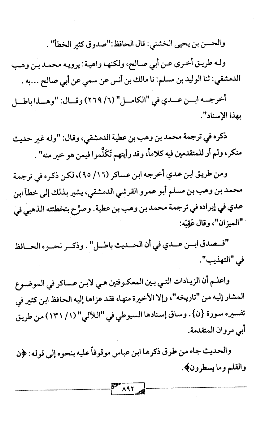 "فصدق ابن عدي في أن الحديث باطل". وذكر نحوه الحافظ