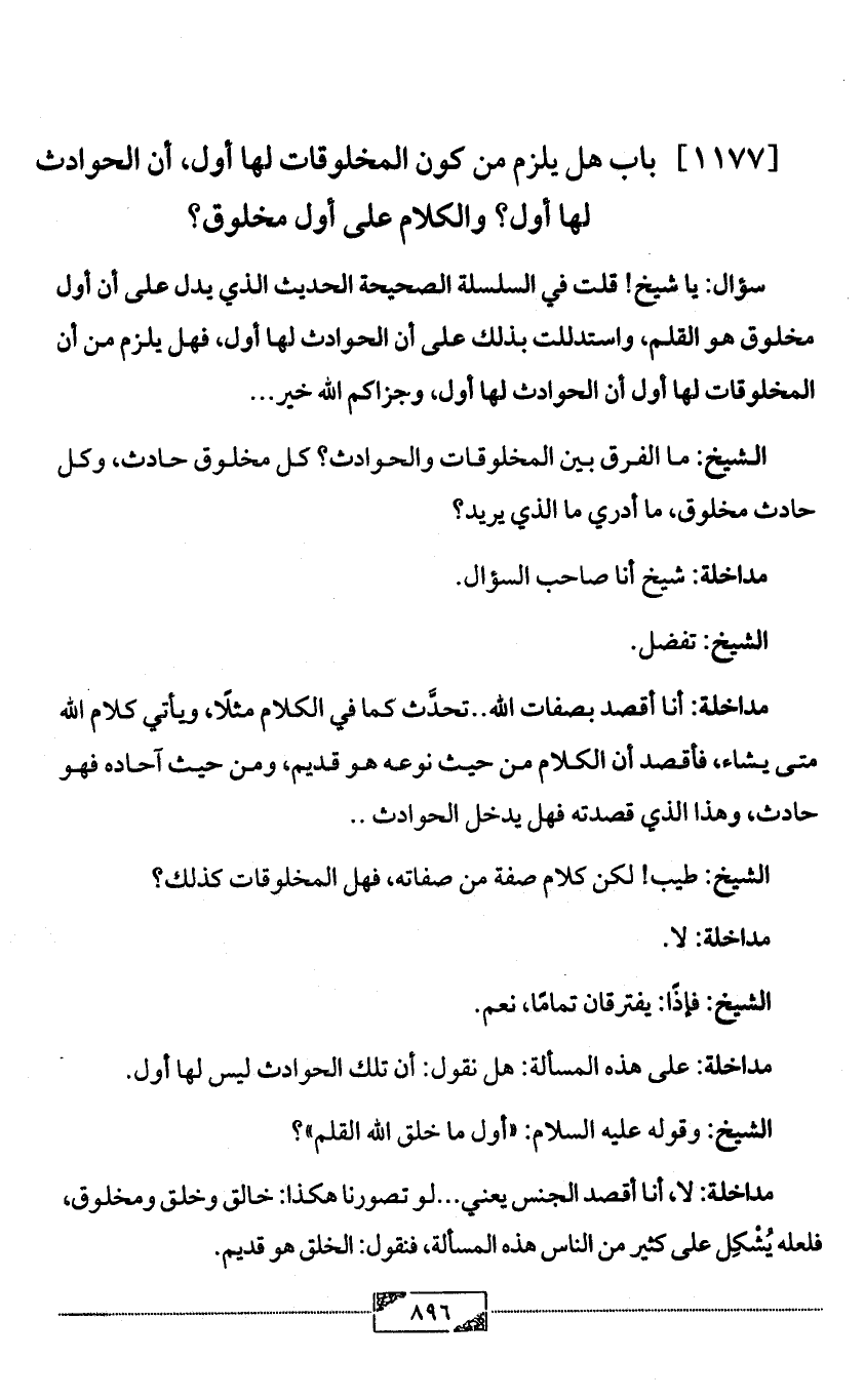 [1177] باب هل يلزم من كون المخلوقات لها أول، أن الحوادث لها أول؟ والكلام على أول مخلوق؟