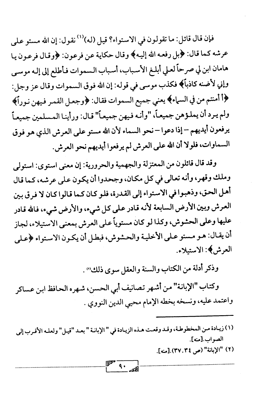 (¬2) "الإبانة" (ص 34 ـ 37). [منه].
