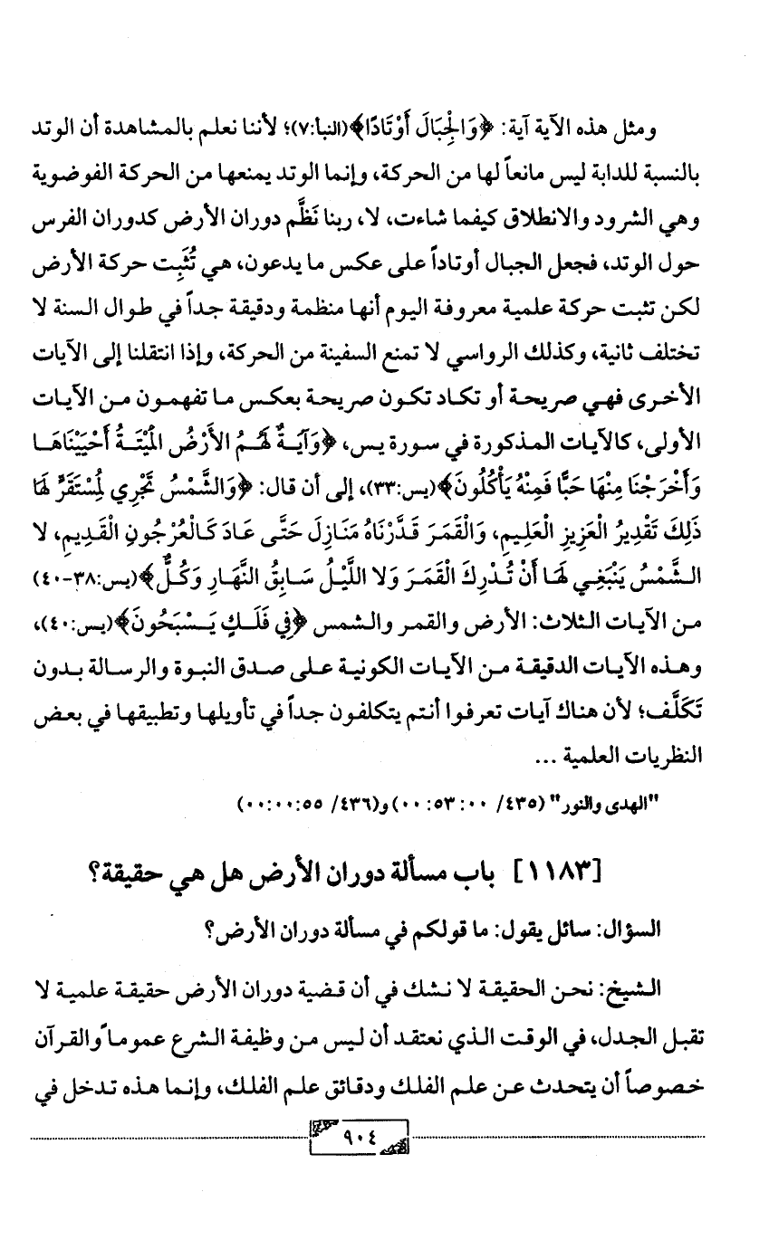 [1183] باب مسألة دوران الأرض هل هي حقيقة؟