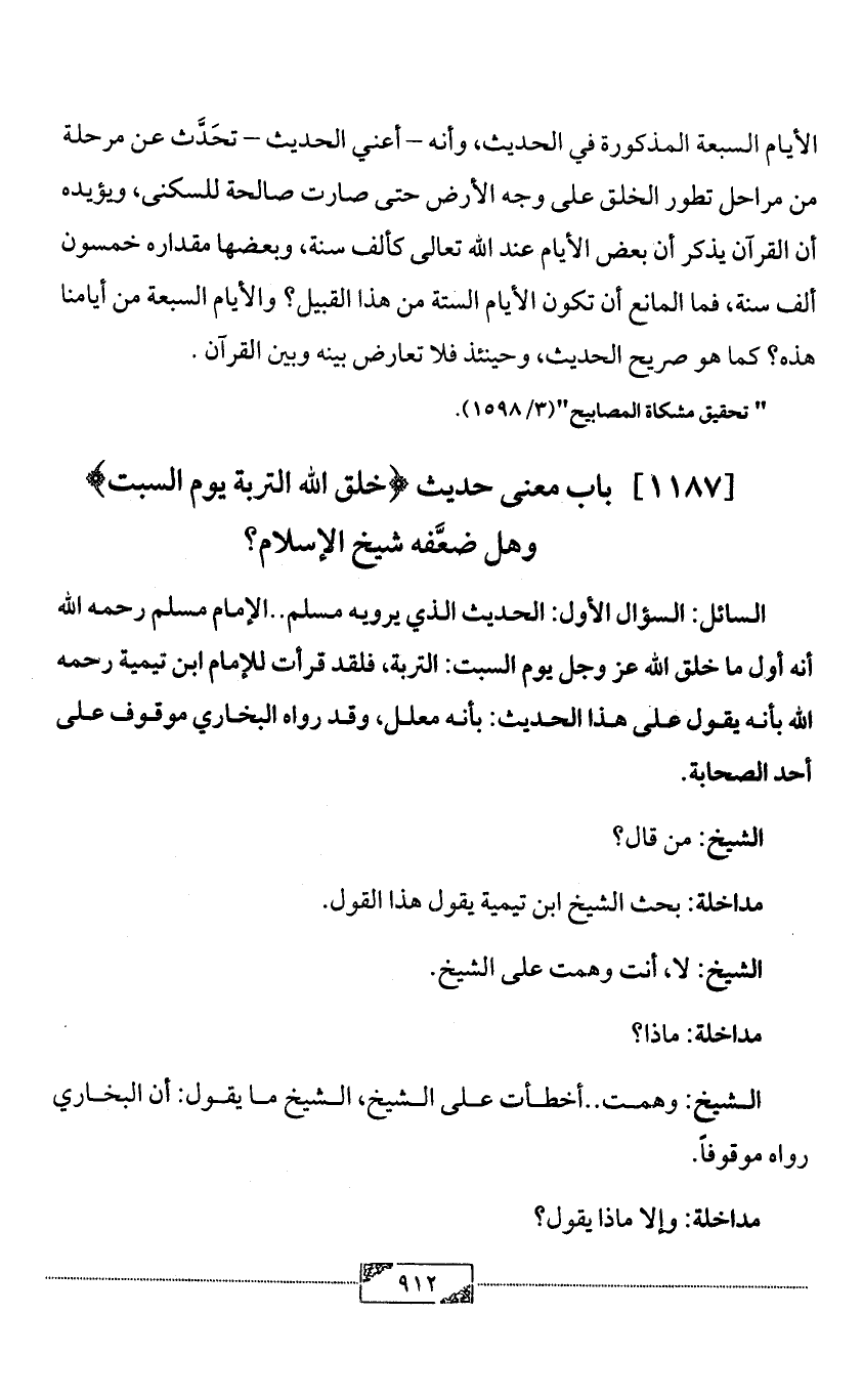 [1187] باب معنى حديث {خلق الله التربة يوم السبت}