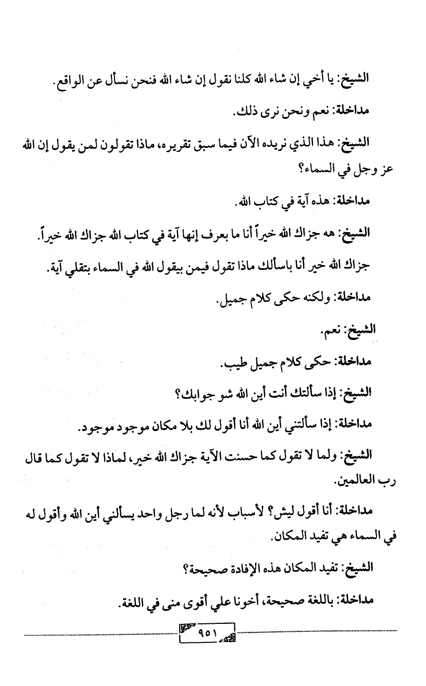 مداخلة: إذا سألتني أين الله أنا أقول لك بلا مكان موجود موجود.