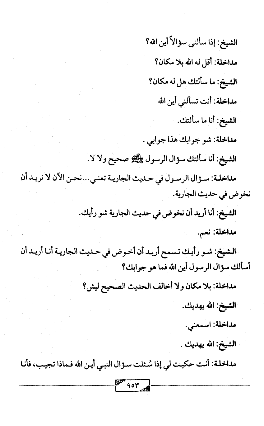 مداخلة: أنت حكيت لي إذا سُئلت سؤال النبي أين الله فماذا تجيب، فأنا