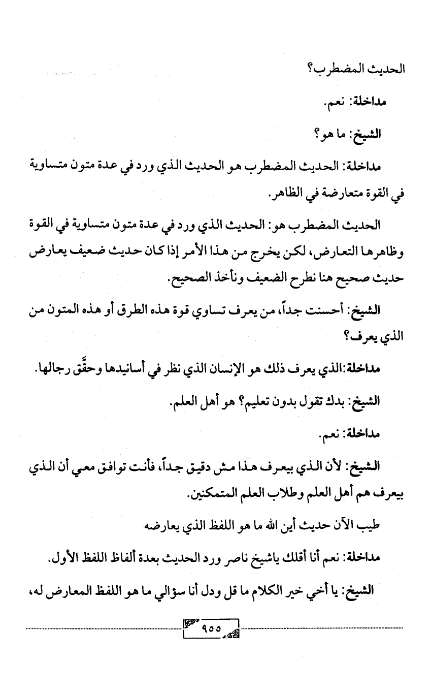 مداخلة: الحديث المضطرب هو الحديث الذي ورد في عدة متون متساوية في القوة متعارضة في الظاهر.