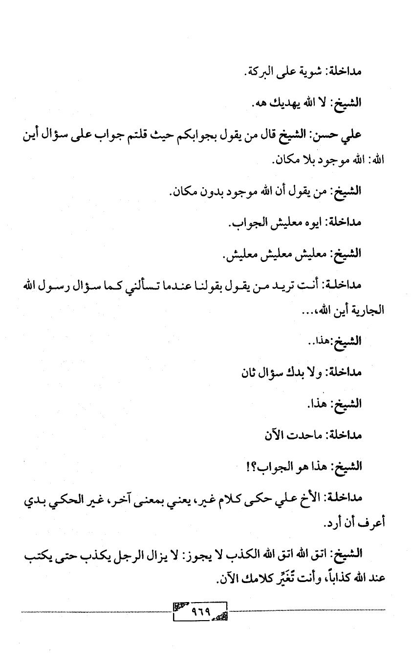 الشيخ: من يقول أن الله موجود بدون مكان.