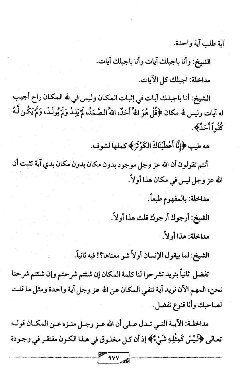الشيخ: أنا باجبلك آيات في إثبات المكان وليس في لله المكان راح أجيب