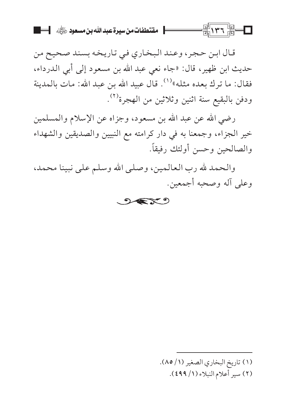 رضي الله عن عبد الله بن مسعود، وجزاه عن الإسلام والمسلمين خير الجزاء، وجمعنا به في دار كرامته مع النبيين والصديقين والشهداء والصالحين وحسن أولئك رفيقاً.