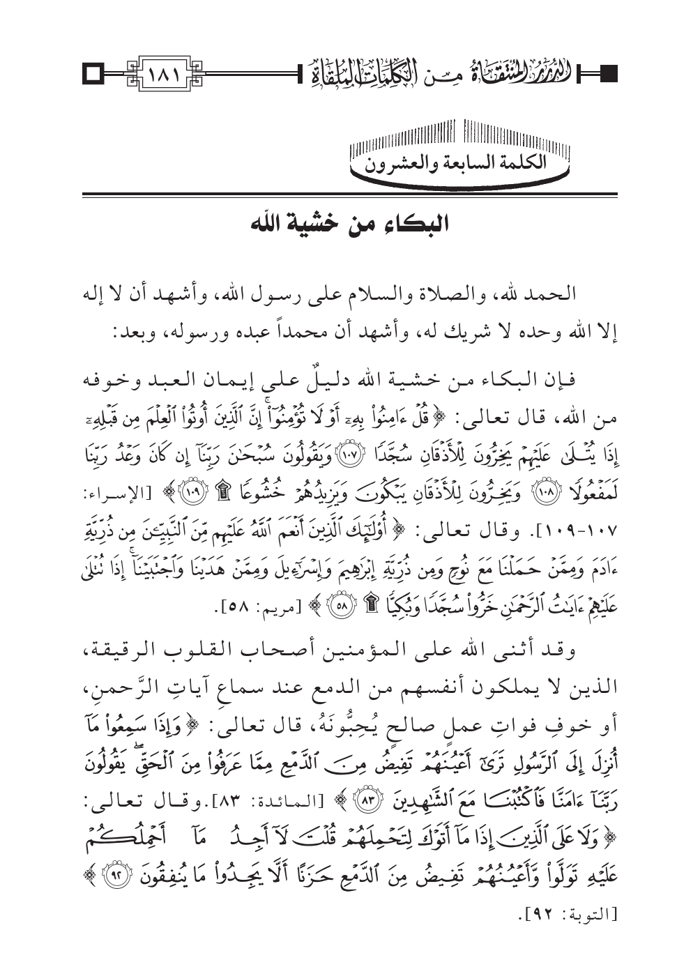 الكلمة السابعة والعشرون: البكاء من خشية الله