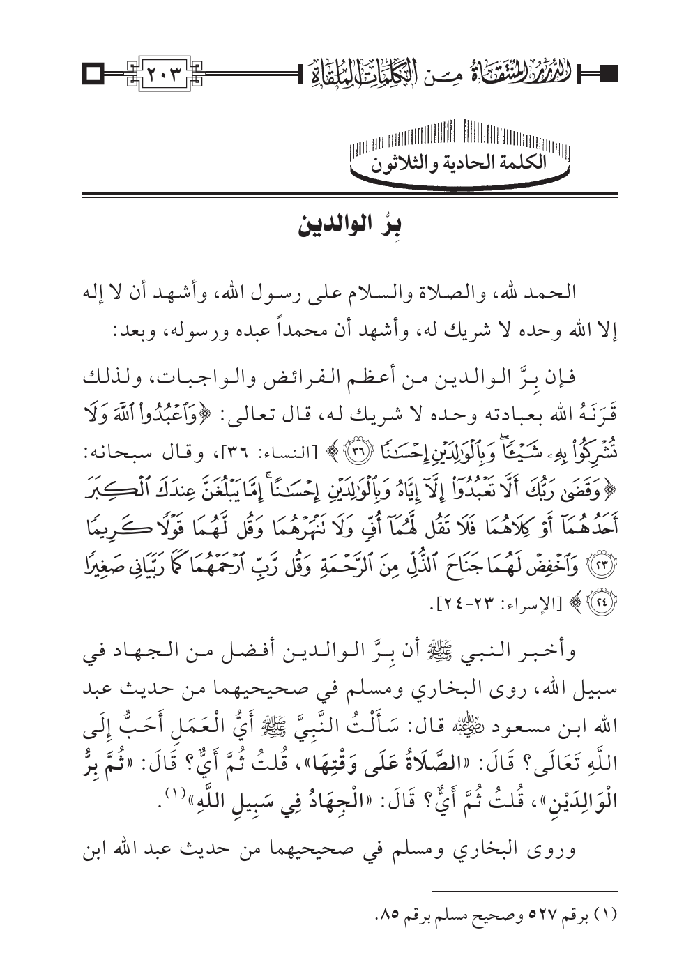 الكلمة الحادية والثلاثون: بِرُّ الوالدين