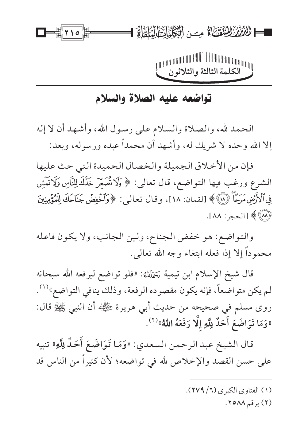 الكلمة الثالثة والثلاثون: تواضعه عليه الصلاة والسلام