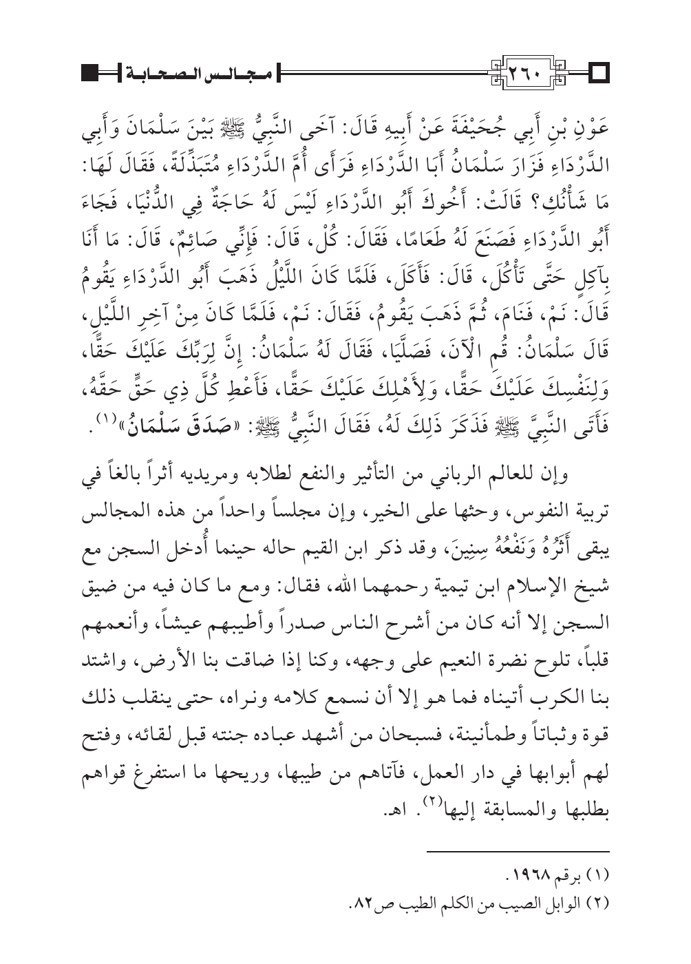 (¬٢) الوابل الصيب من الكلم الطيب ص: ٨٢.