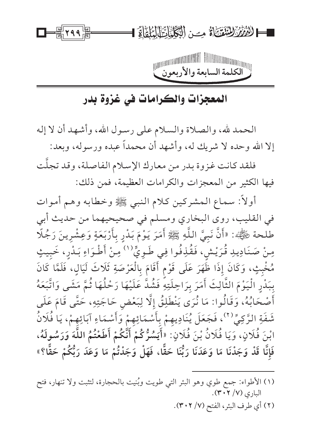 الكلمة السابعة والأربعون: المعجزات والكرامات في غزوة بدر