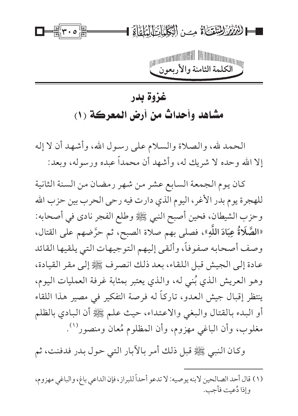 الكلمة الثامنة والأربعون: غزوة بدر مشاهد وأحداث من أرض المعركة (١)