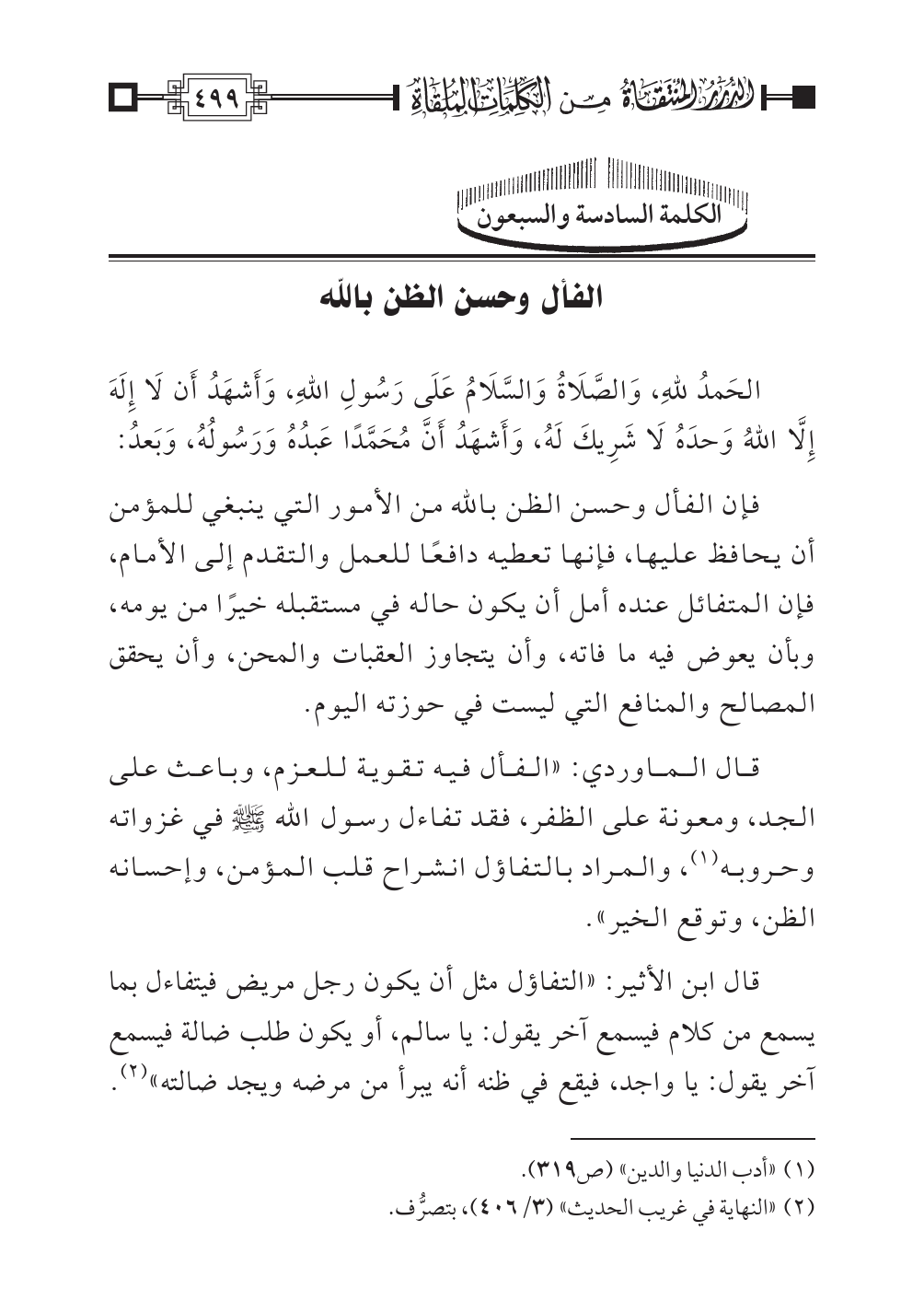 الكلمة السادسة والسبعون: الفأل وحسن الظن بالله
