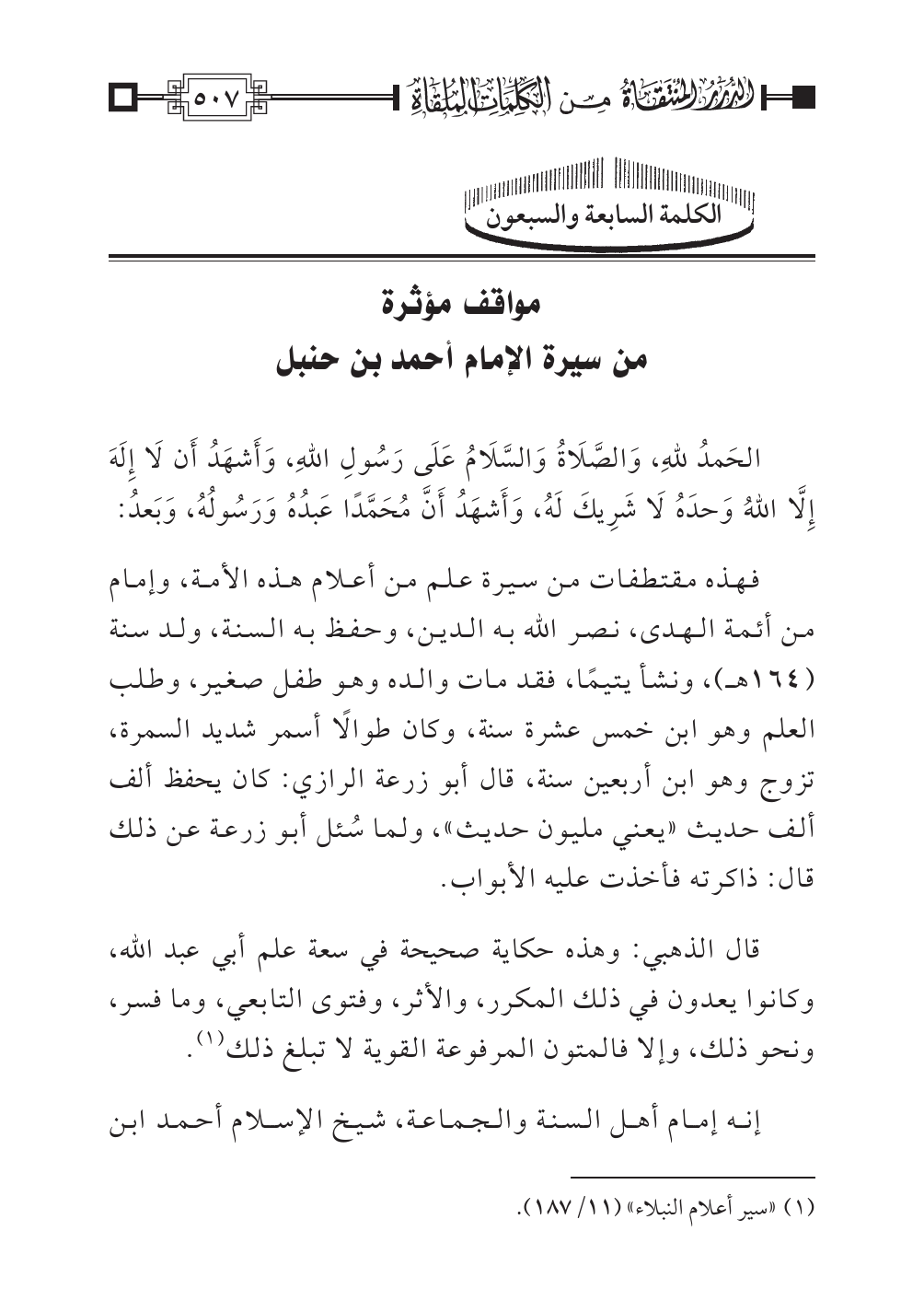(¬١) «سير أعلام النبلاء» (١١/ ١٨٧).