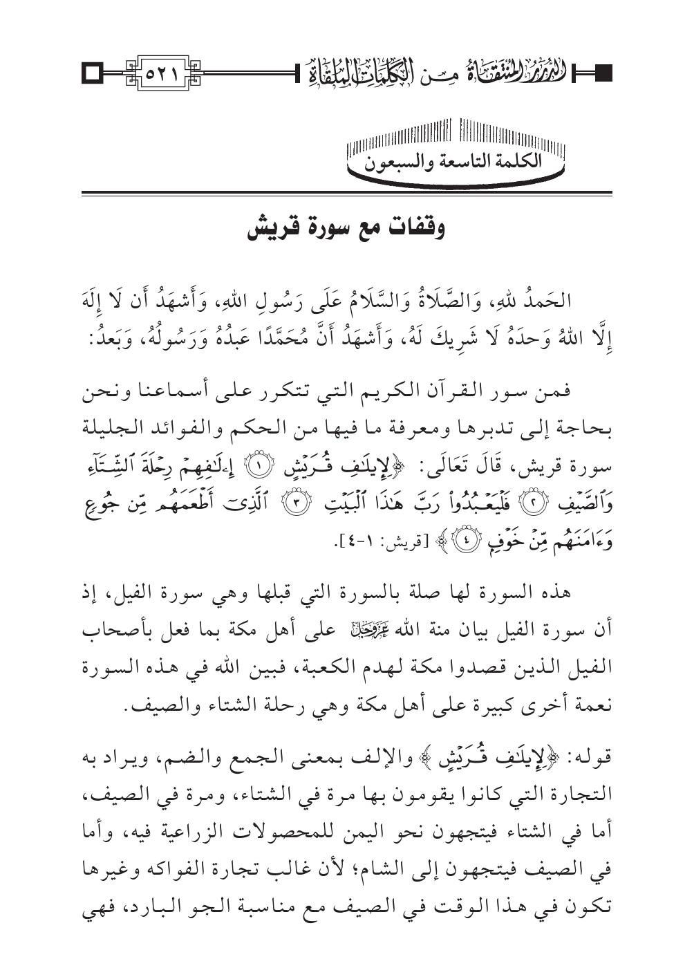الكلمة التاسعة والسبعون: وقفات مع سورة قريش