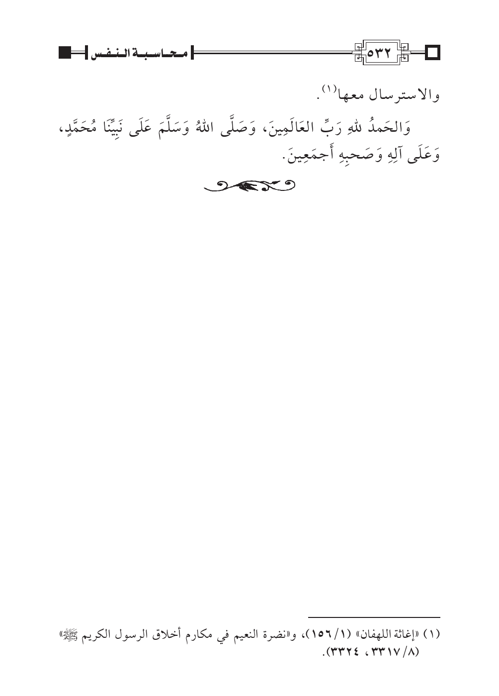 (¬١) «إغاثة اللهفان» (١/ ١٥٦)، و «نضرة النعيم في مكارم أخلاق الرسول الكريم صلى اللهُ عليه وسلم» (٨/ ٣٣١٧، ٣٣٢٤).