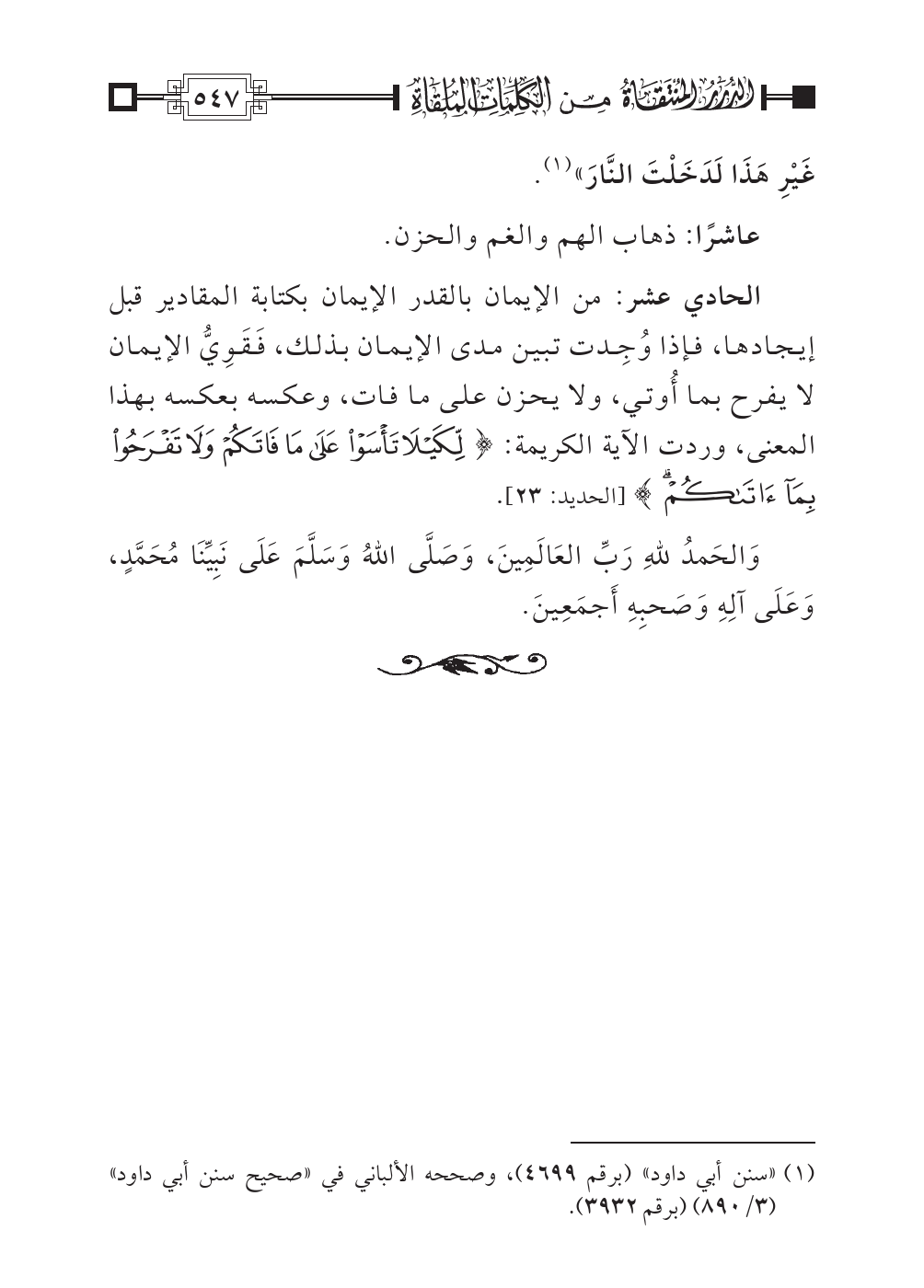 (¬١) «سنن أبي داود» (برقم ٤٦٩٩)، وصححه الألباني في «صحيح سنن أبي داود» (٣/ ٨٩٠) (برقم ٣٩٣٢).