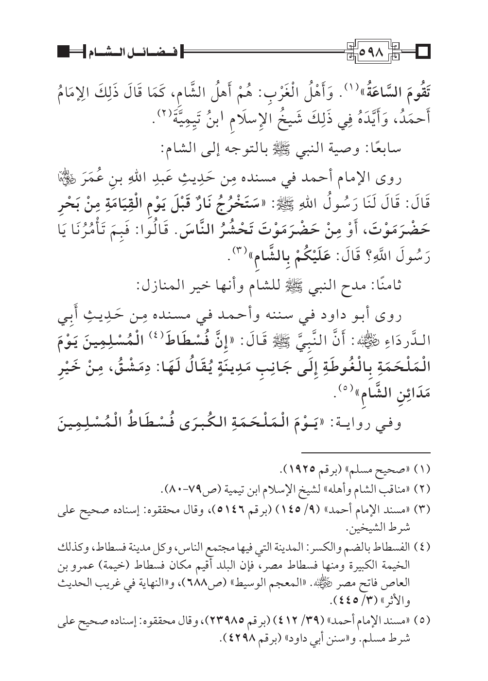 (¬٢) «مناقب الشام وأهله» لشيخ الإسلام ابن تيمية (ص: ٧٩ - ٨٠).