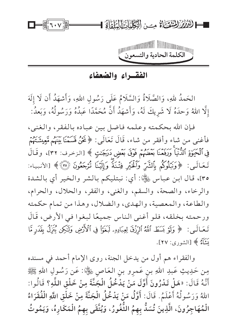 الكلمة الحادية والتسعون: الفقراء والضعفاء