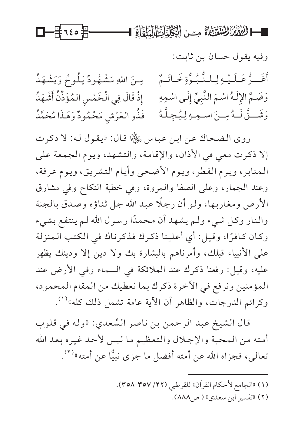 وَضَمَّ الإِلَهُ اسْمَ النَّبِيِّ إِلَى اسْمِهِ ... إِذْ قَالَ فِي الْخَمْسِ المُؤَذِّنُ أَشْهَدُ