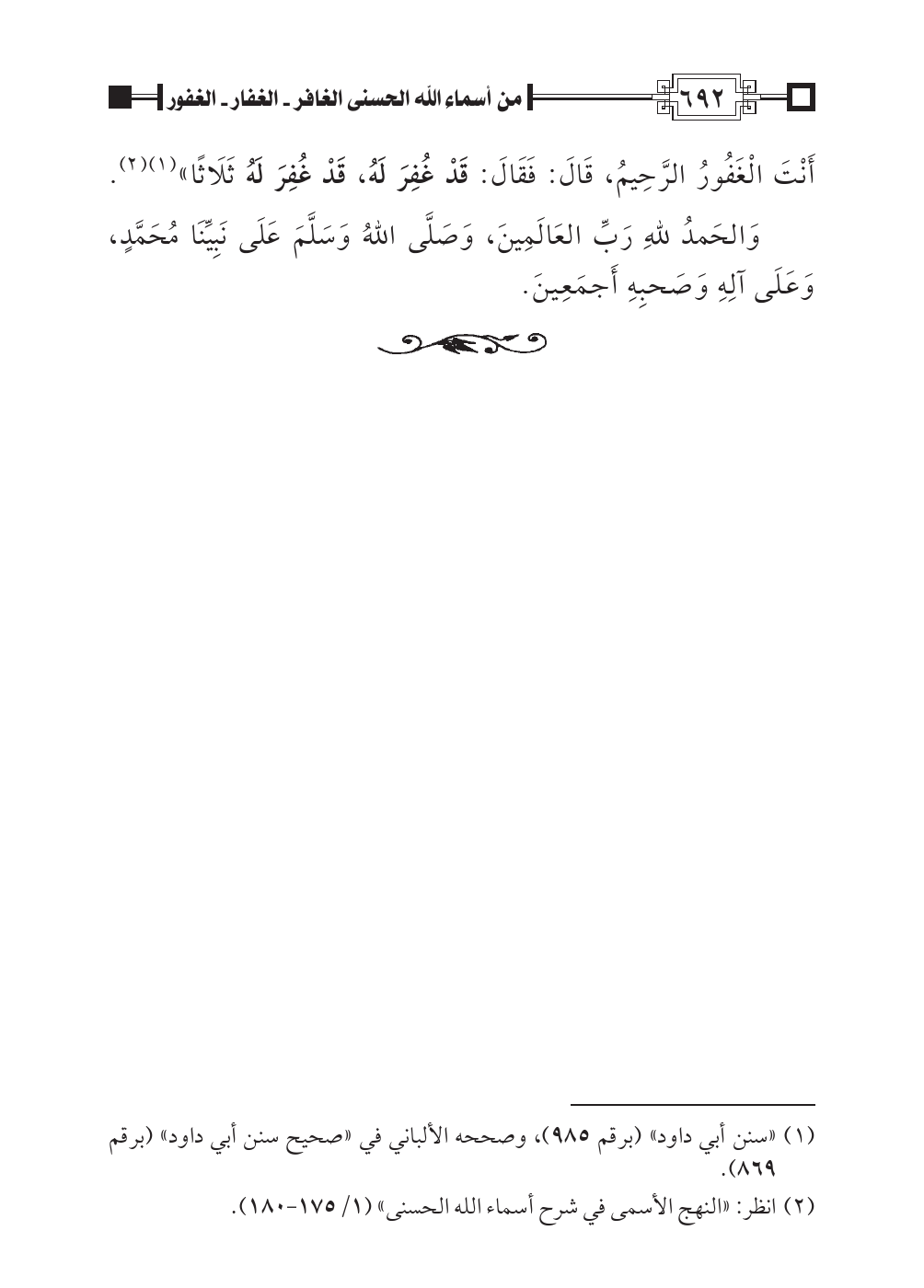 أَنْتَ الْغَفُورُ الرَّحِيمُ، قَالَ: فَقَالَ: قَدْ غُفِرَ لَهُ، قَدْ غُفِرَ لَهُ ثَلَاثًا» (¬١) (¬٢).