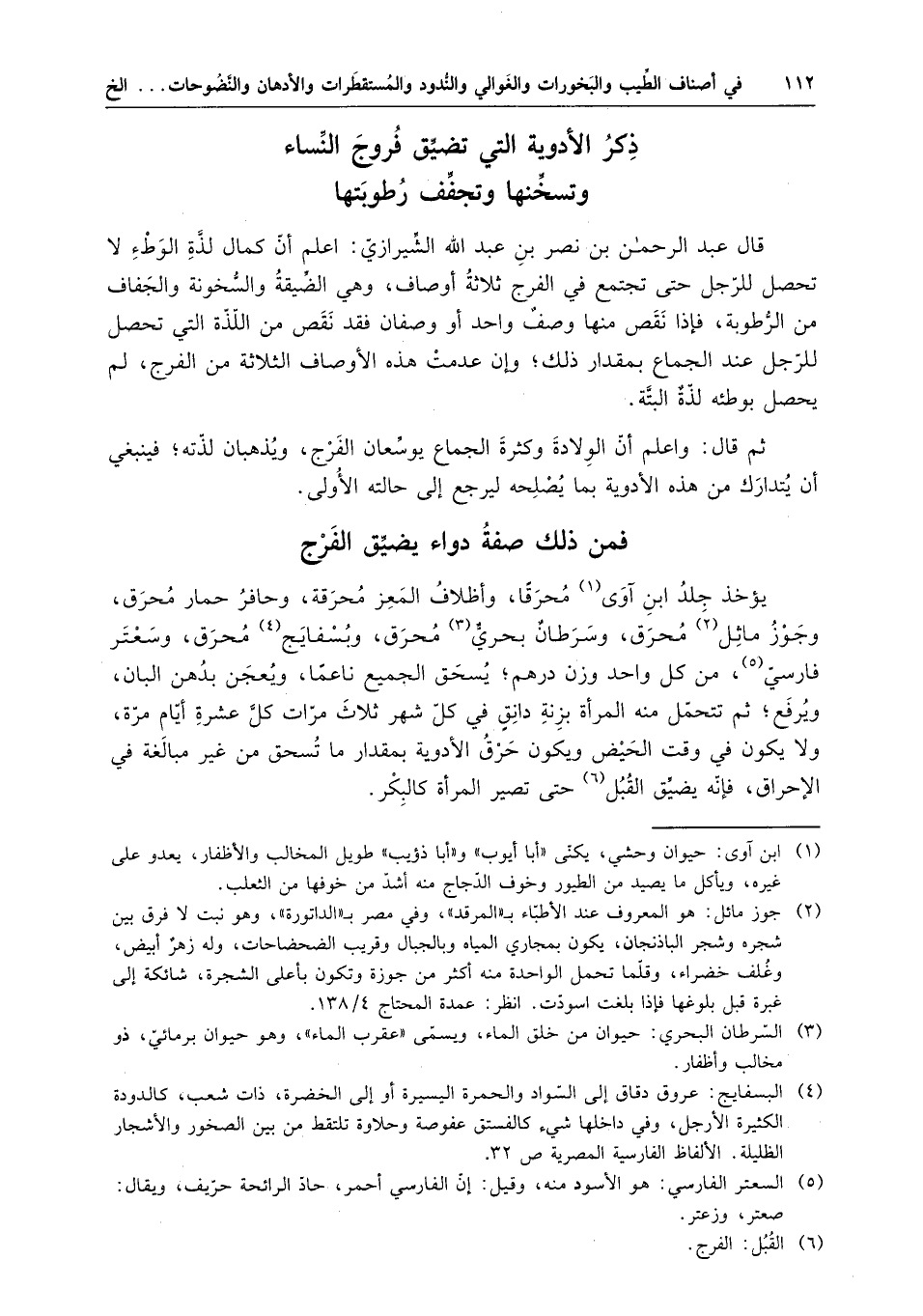 ذكر الأدوية التي تضيق فروج النساء وتسخنها وتجفف رطوبتها