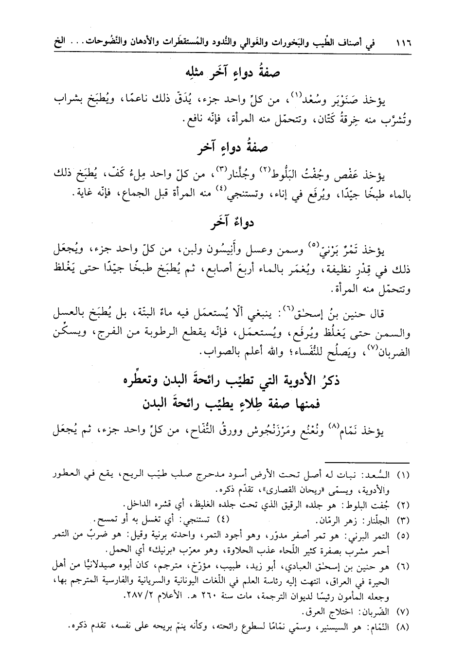 ذكر الأدوية التي تطيب رائحة البدن وتعطره فمنها صفة طلاء يطيب رائحة البدن