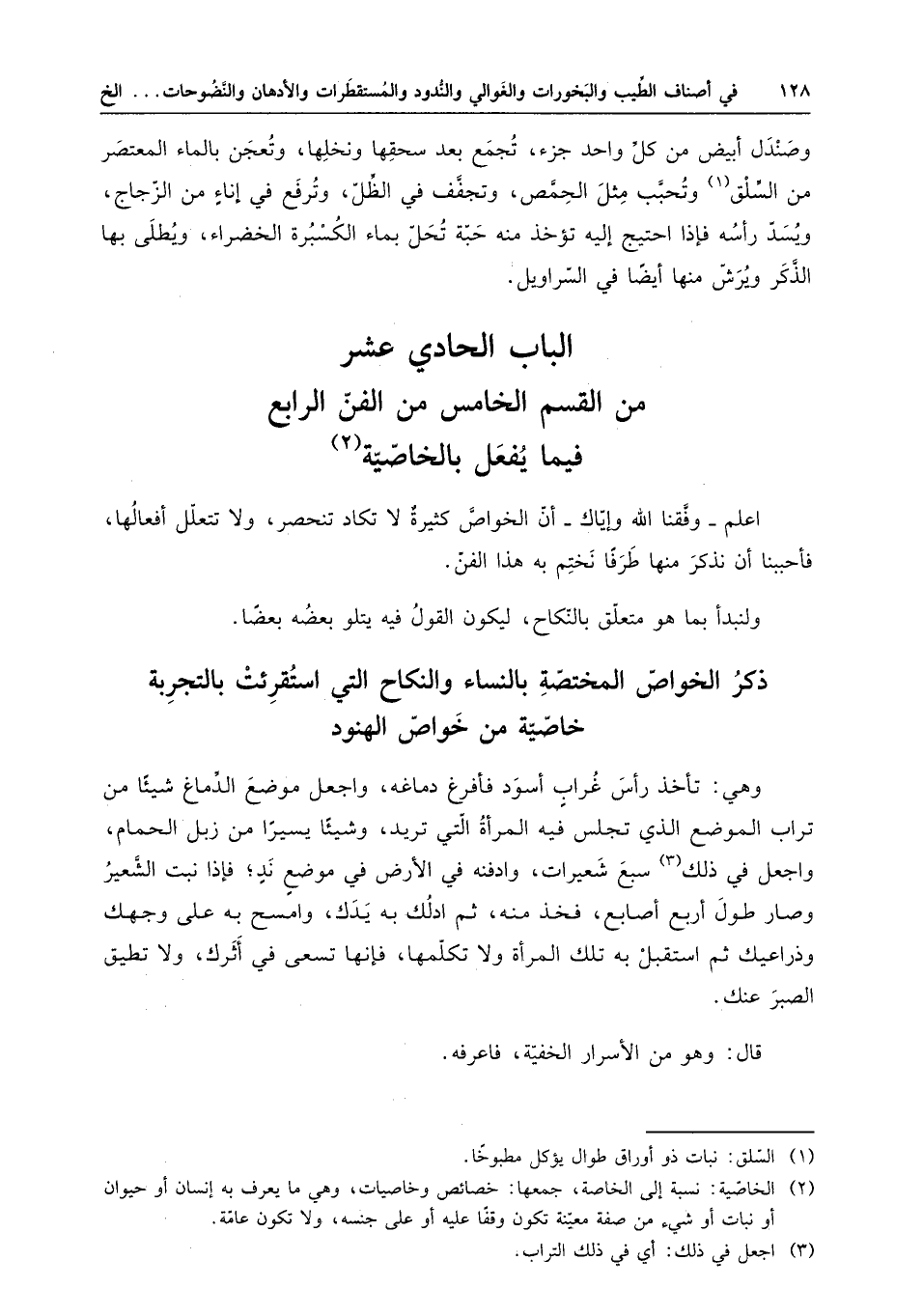 الباب الحادي عشر من القسم الخامس من الفن الرابع فيما يفعل بالخاصية