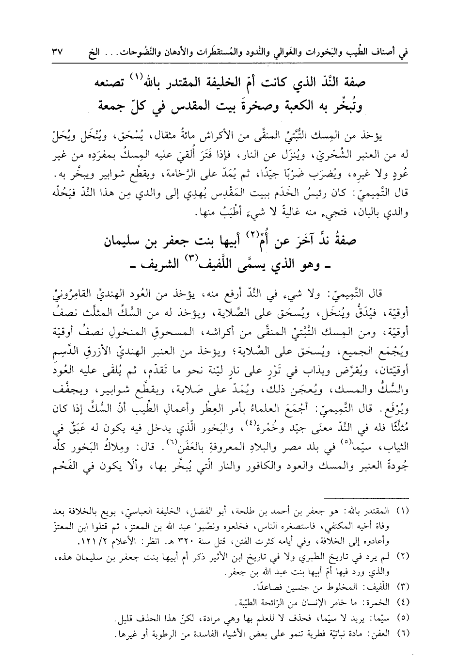 صفة الند الذي كانت أم الخليفة المقتدر بالله تصنعه وتبخر به الكعبة وصخرة بيت المقدس في كل جمعة
