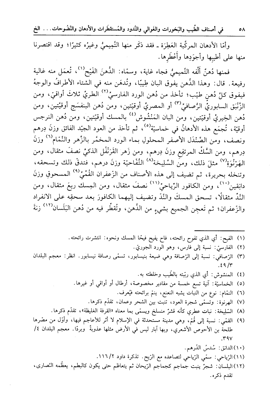 وأما الأدهان المركبة العطرة - فقد ذكر منها التميمي وغيره كثيراً ؛ وقد اقتصرنا على أطيبها وأجودها وأعطرها .