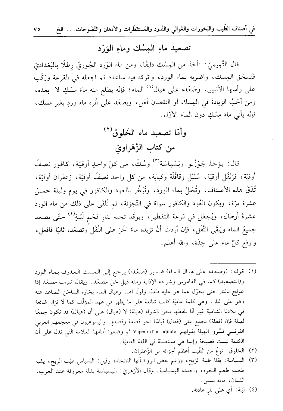 وأما تصعيد ماء الخلوق من كتاب الزهراوي