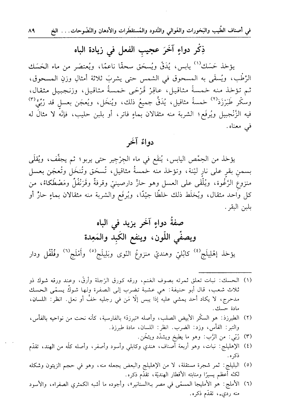 صفة دواء آخر يزيد في الباه ويصفي اللون وينفع الكبد والمعدة