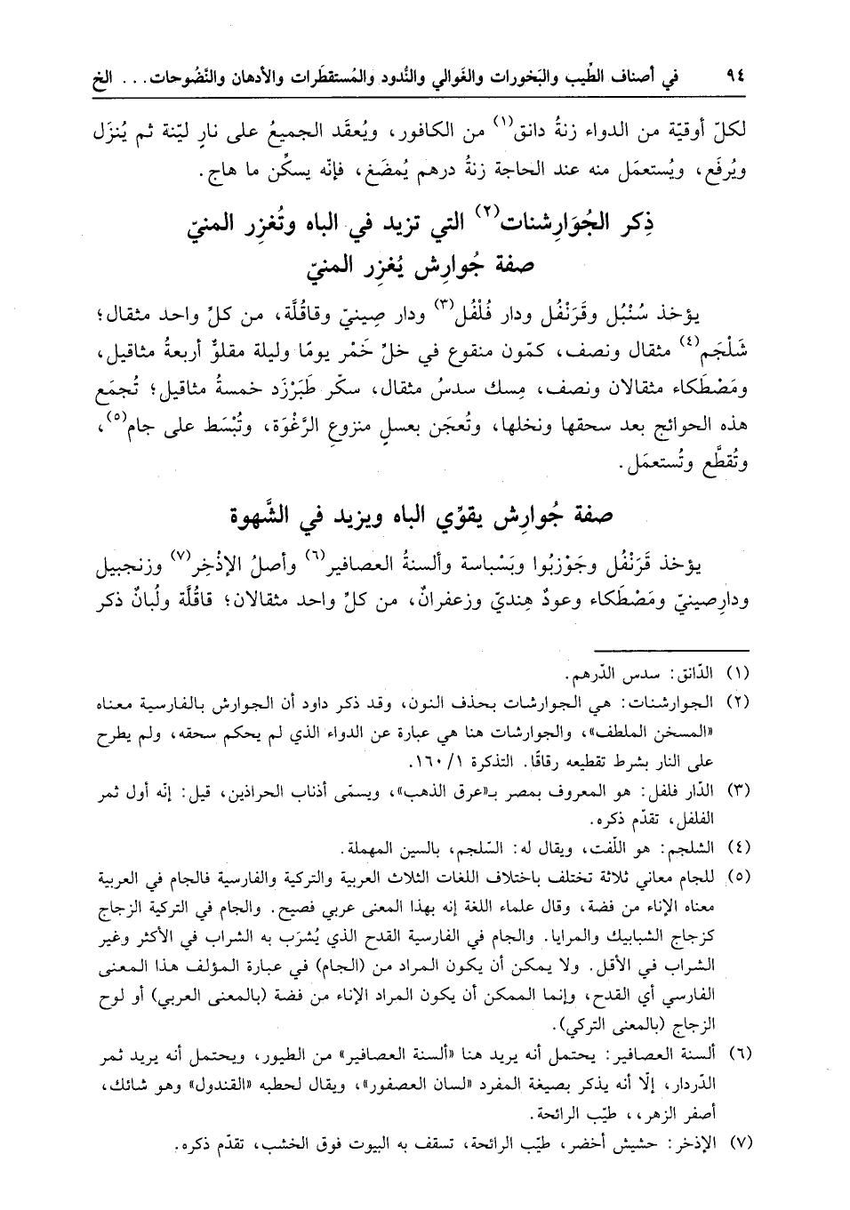 ذكر الجوارشنات التي تزيد في الباه وتغزر المنى صفة جوارش يغزر المنى
