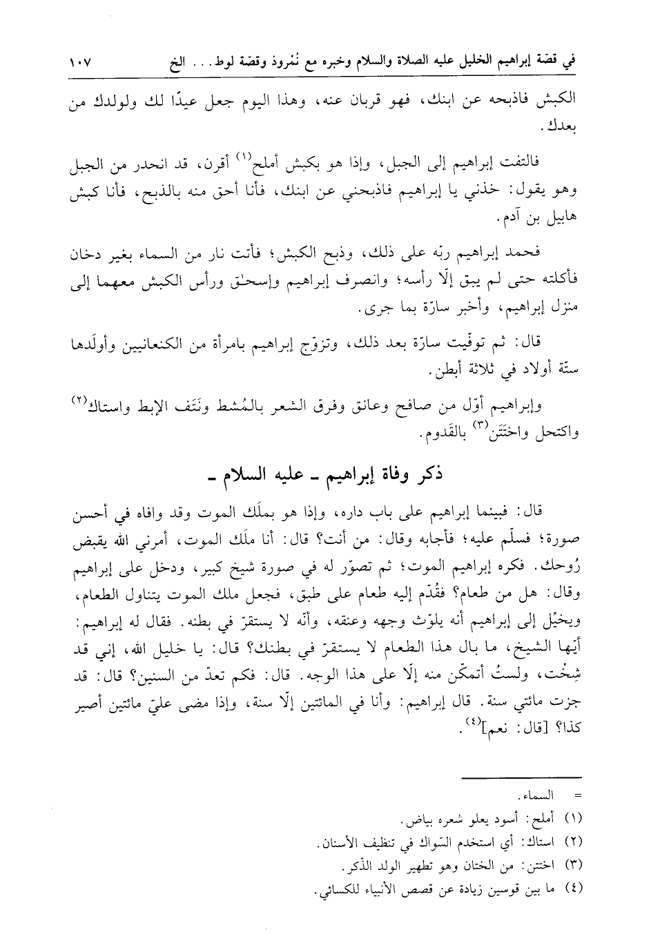 الكبش فاذبحه عن ابنك ، فهو قربان عنه ، وهذا اليوم جعل عيداً لك ولودك من بعدك .